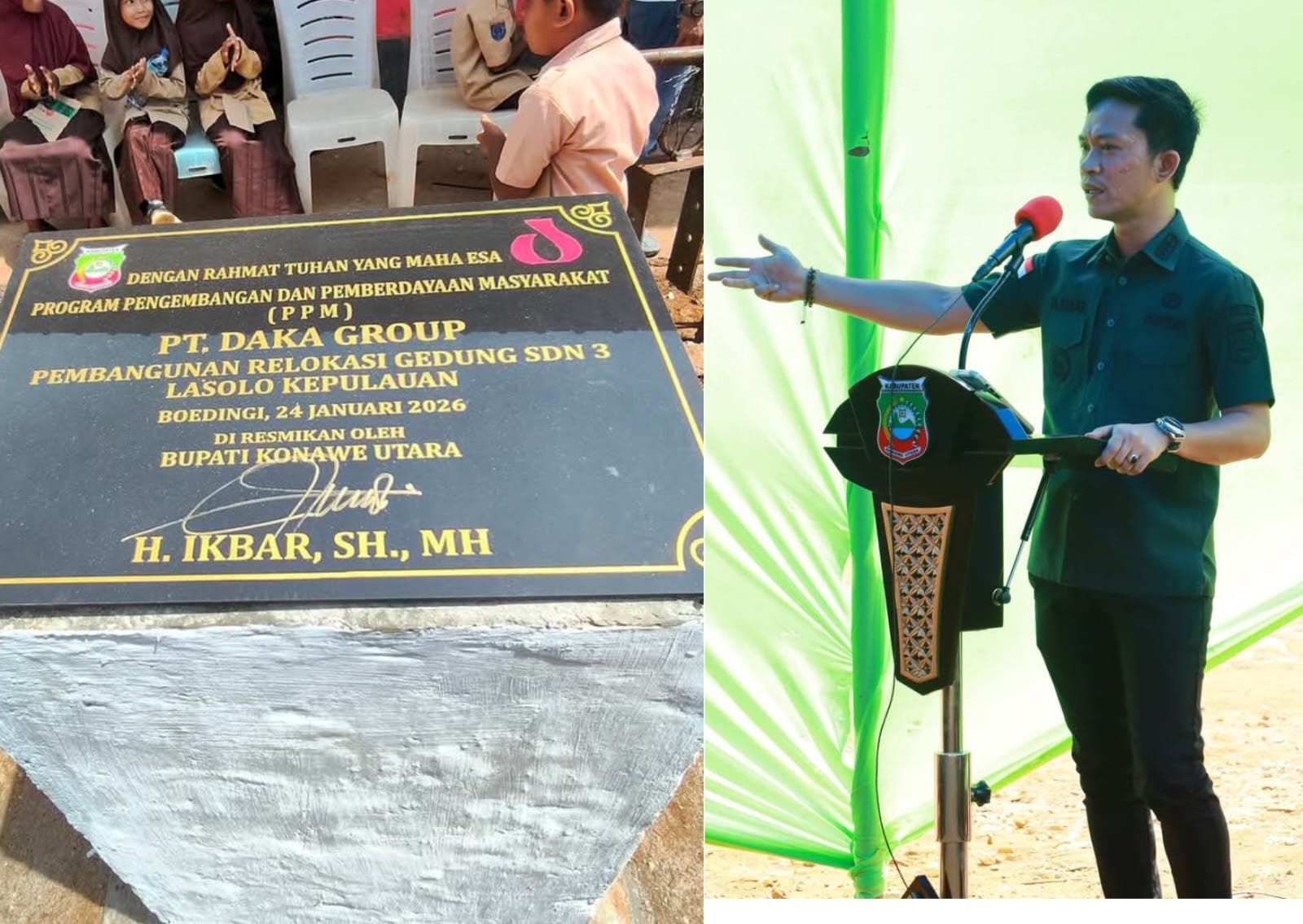 WANGGUDU – Bupati Konawe Utara Provinsi Sulawesi Tenggara (Sultra), Ikbar meresmikan relokasi Gedung Sekolah Dasar Negeri (SDN) 3 Lasolo Kepulauan tepatnya di Desa Boedingi Kecamatan Lasolo Kepulauan (Laskep), yang dibangun oleh PT Daka Group melalui program pengembangan dan pemberdayaan masyarakat (PPM), Sabtu (24/1/2026).