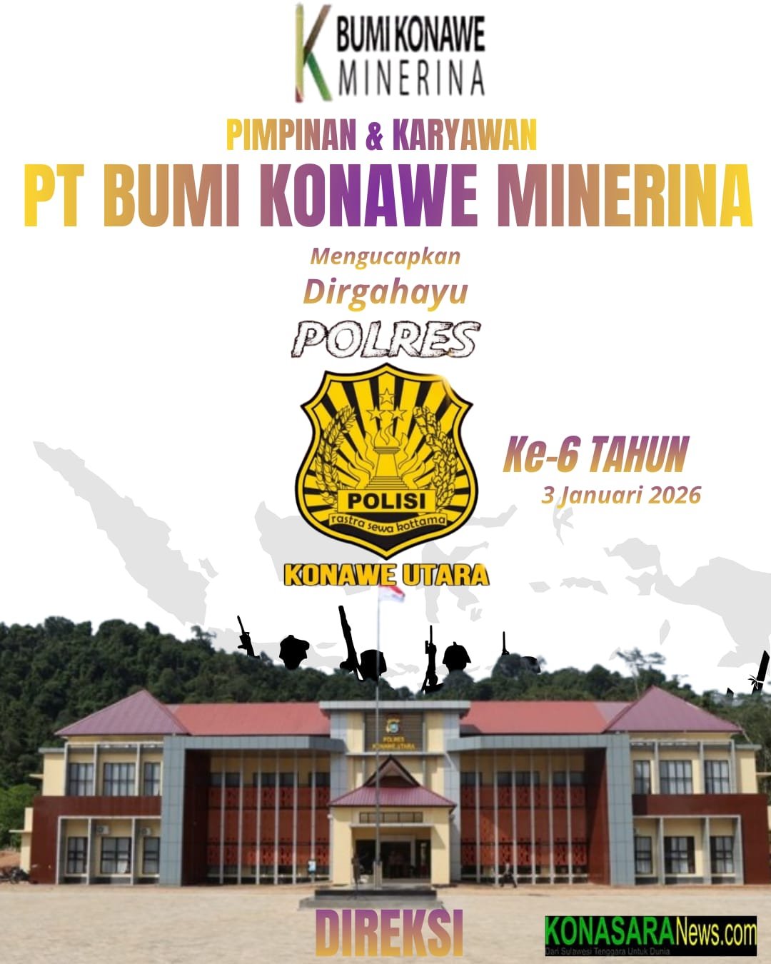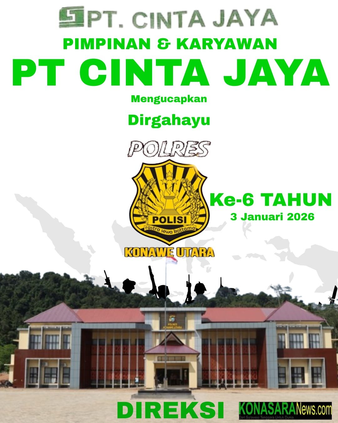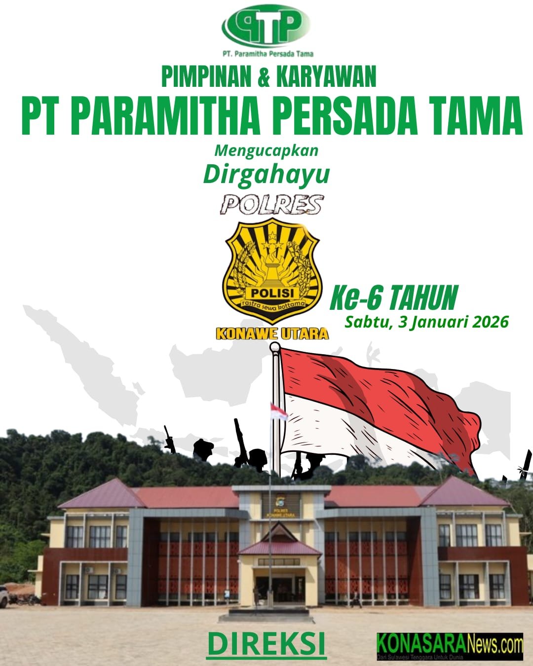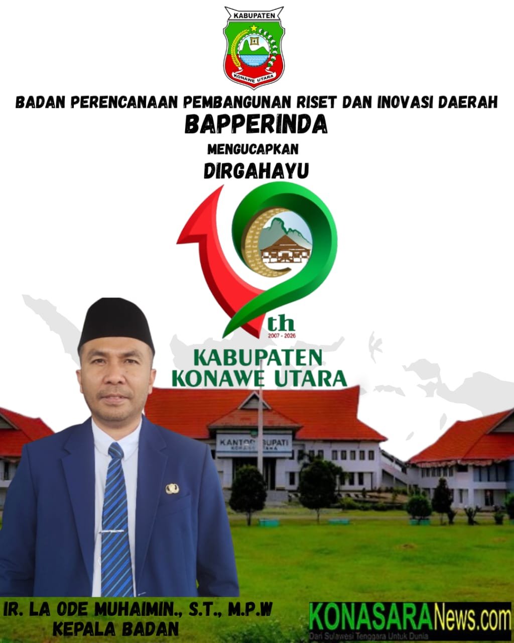 WANGGUDU – Tanggal 2 Januari 2026, Kabupaten Konawe Utara Provinsi Sulawesi Tenggara (Sultra), resmi memasuki usia 19 Tahun, di mana momentum perayaan hari jadi Bumi Oheo ditempatkan pada tugu Konasara atau tugu Bulan Sabit tepatnya di Ibukota Wanggudu.