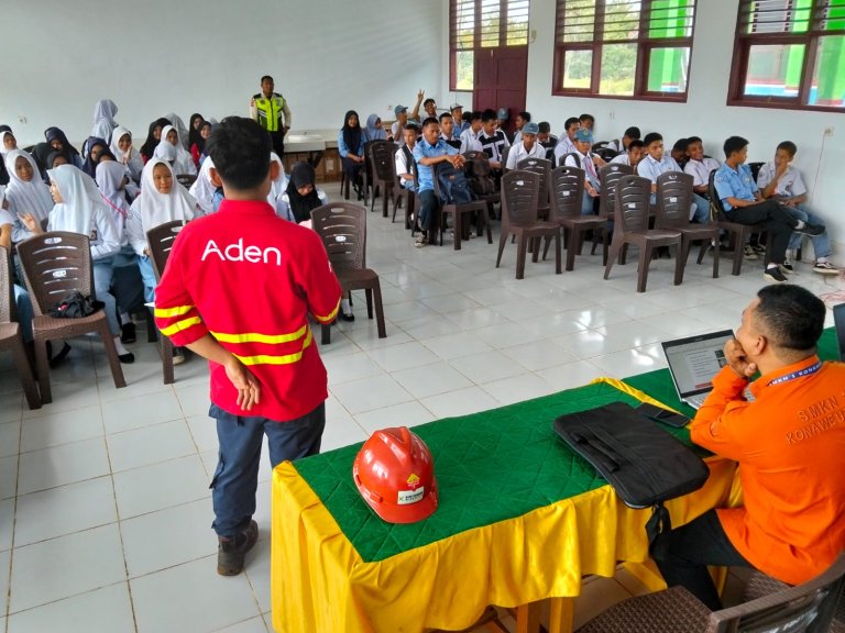 Materi dibawakan langsung Hendry Thandung dari HSE PT BKM dan Nurisratullah dari HSE PT Aden di hadapan sekitar 65 siswa-siswi.